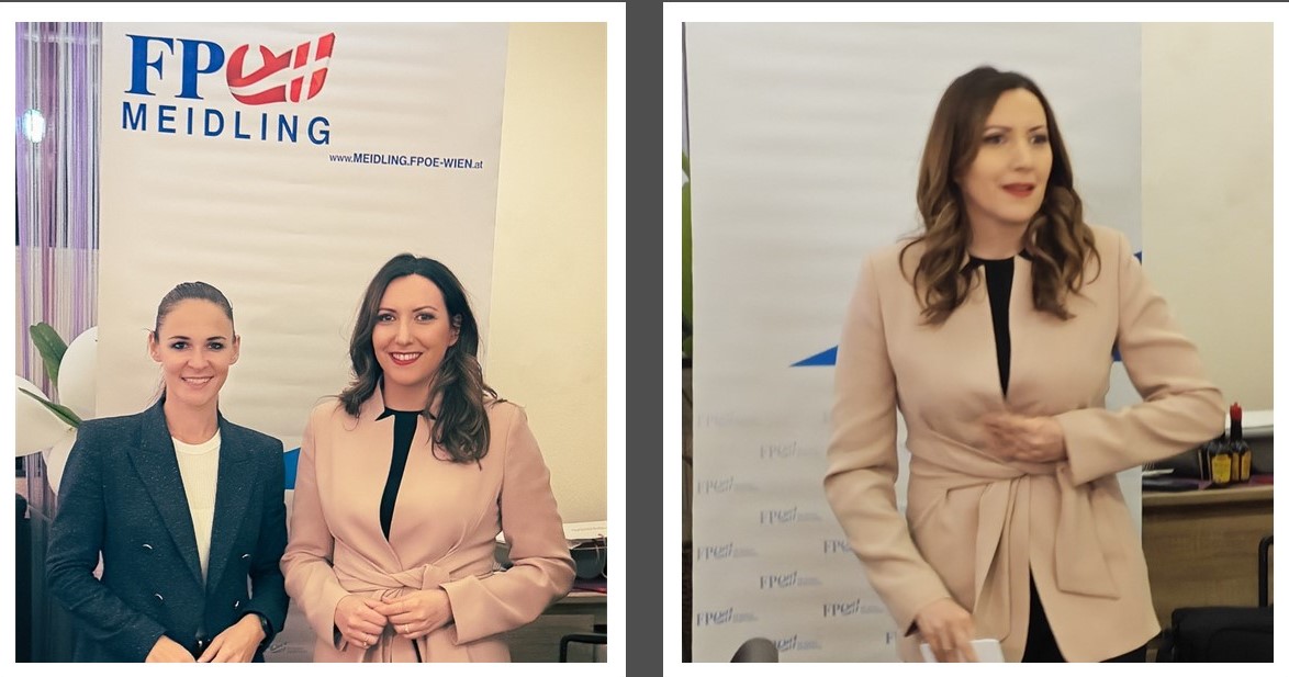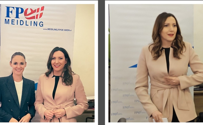 MdEP Petra Steger durfte nicht nur zahlreiche Gäste begrüßen, sondern freute sich auch, dass NRAbg Lisa Schuch-Gubik den Weg nach Meidling auf sich genommen hatte. Und so ganz ohne einen kurzen Vortrag über die Probleme der Alt-Parteien mit den Medien, konnte Petra Steger sie nicht wieder gehen lassen.