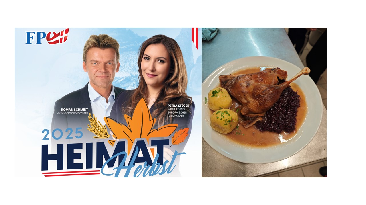 Am 14. November lud Petra Steger und ihr Team zum traditionellen Martini-Gans-Essen im GH KRAPF. Über 50 Gäste kamen der Einladung nach und hatten einen angenehmen Abend. Als Ehrengast war LAbg. Roman Schmidt geladen. Seine spannende (und etwas lange) Rede, wurde von allen Gästen aufmerksam verfolgt.